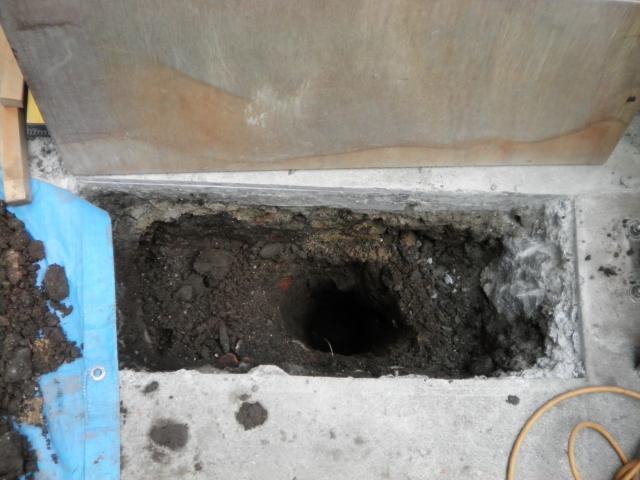 はつります。土が出てきたのでスコップで30センチから40センチ掘り