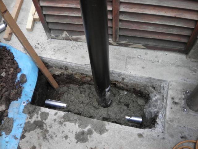 防犯カメラ設置のため建柱作業