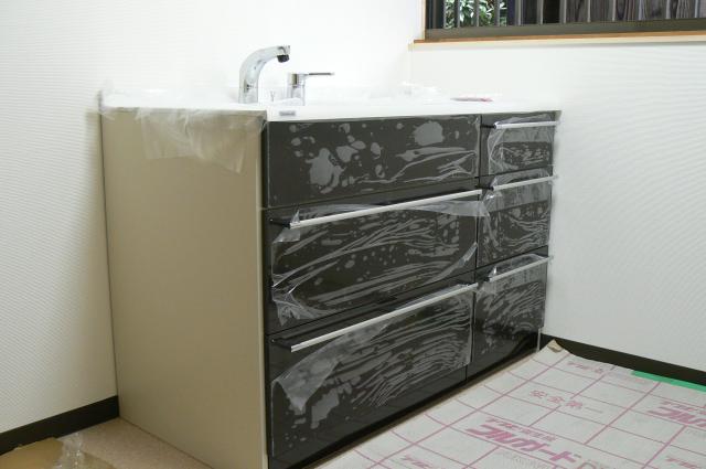 洗面化粧台を設置いたしました。