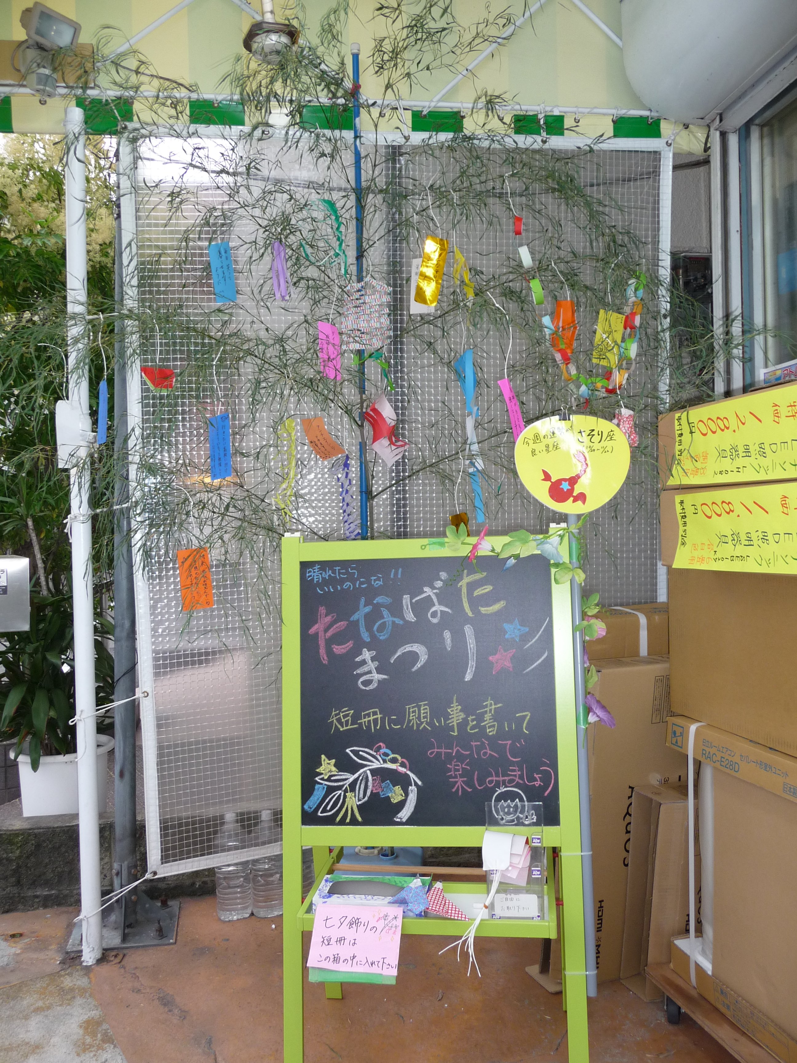 本日、笹を店頭に飾りました。 お近くの皆様、短冊を店頭に 置いてありますので、ご自由に 書いて飾って下さいね。