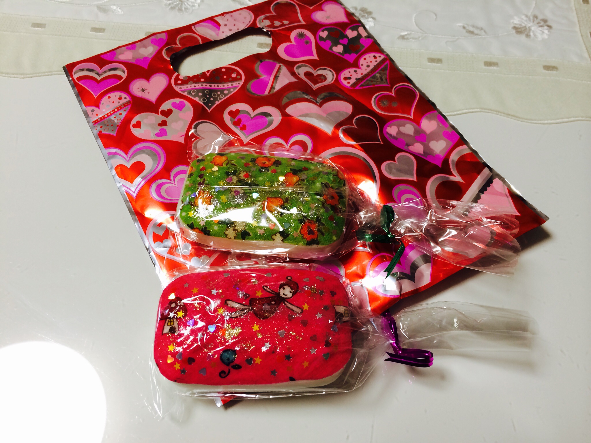 そして、お得意様が妻に、ご自分で作られた石鹸の上にカラフルな