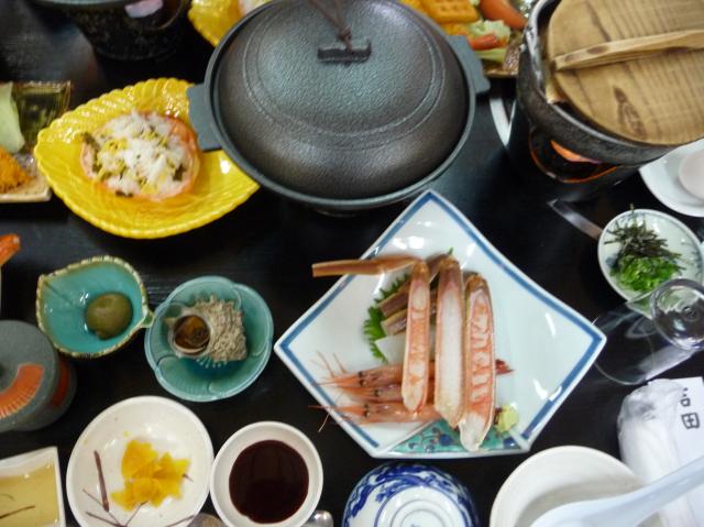 さざえ、かにみそ、かにのさしみ、焼きがに、かに鍋と
