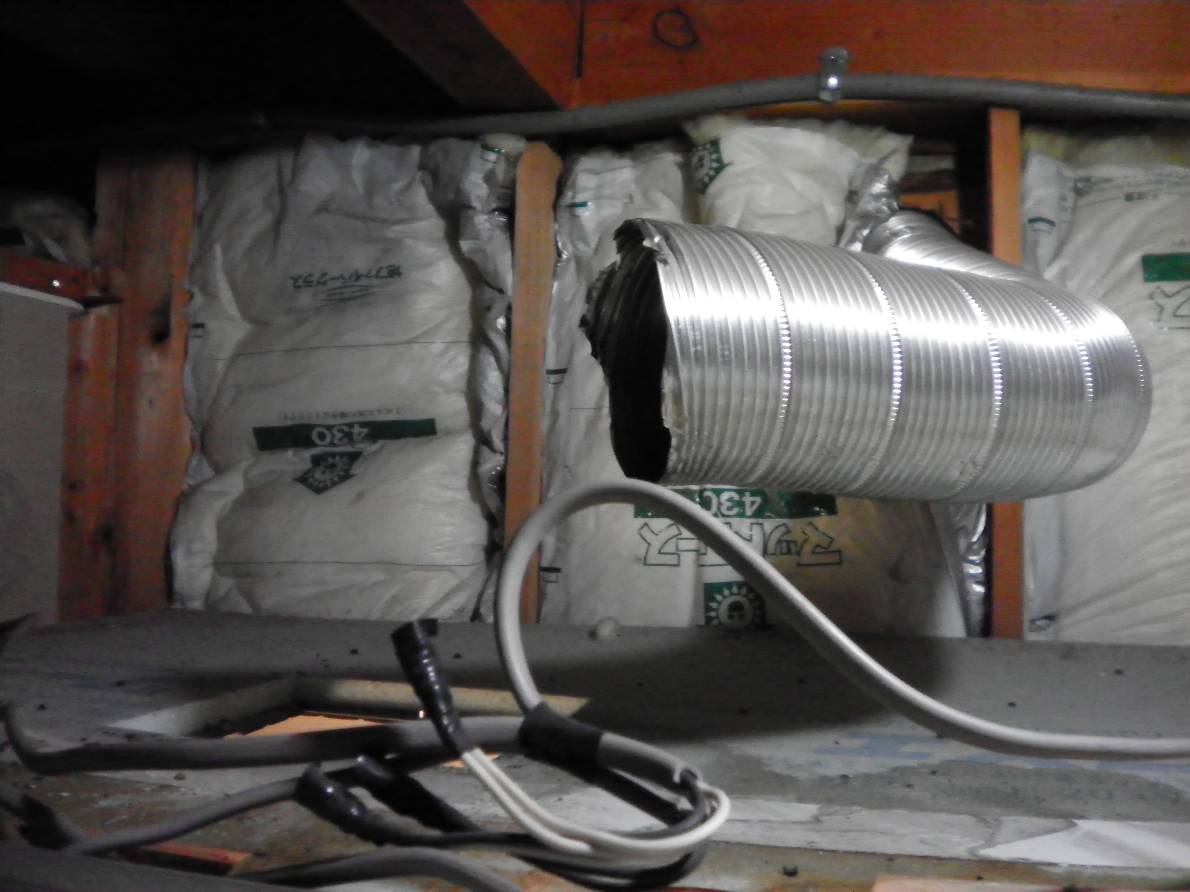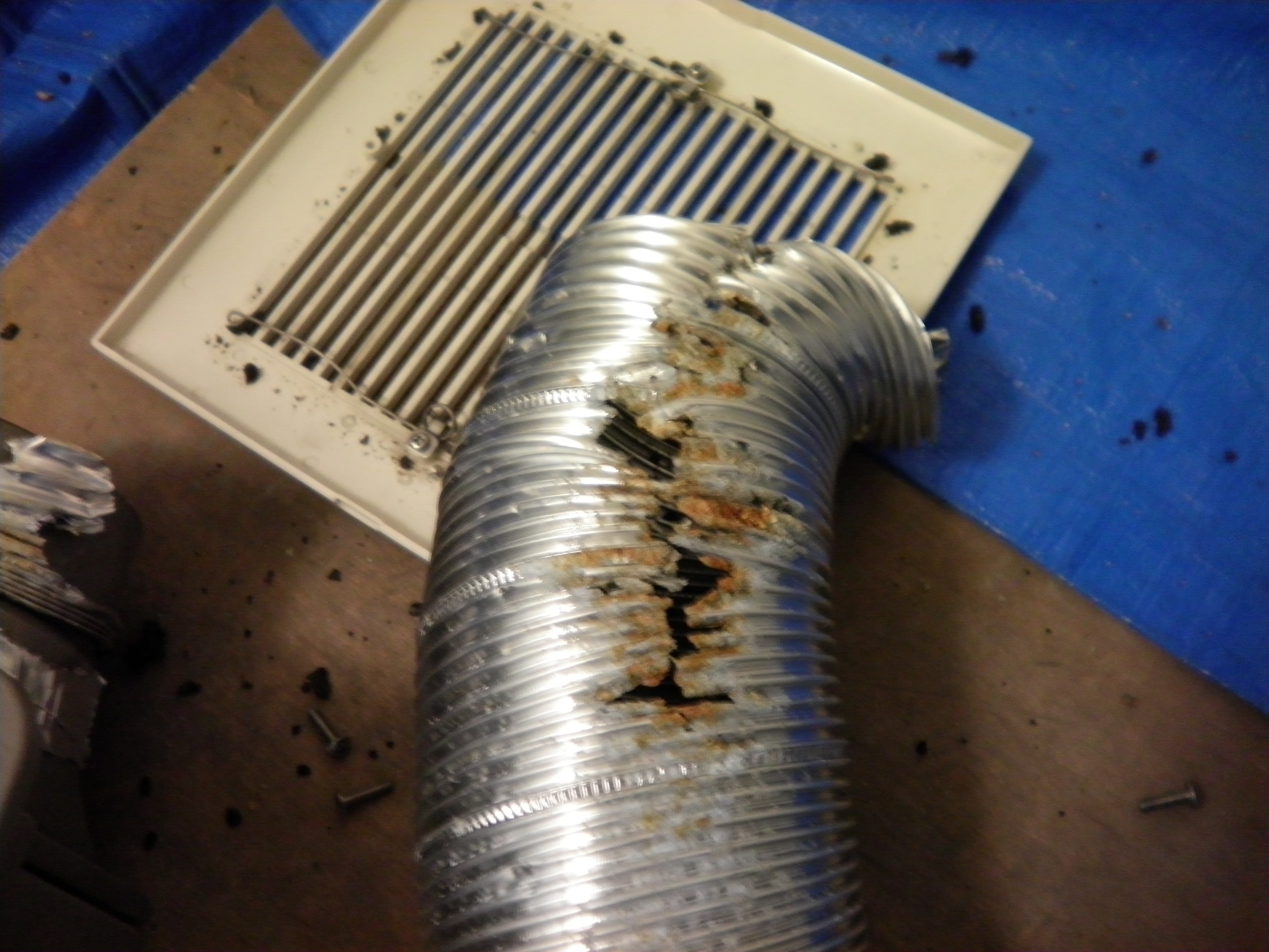 アルミダクトが朽ちていました。既存のダクトに余裕が