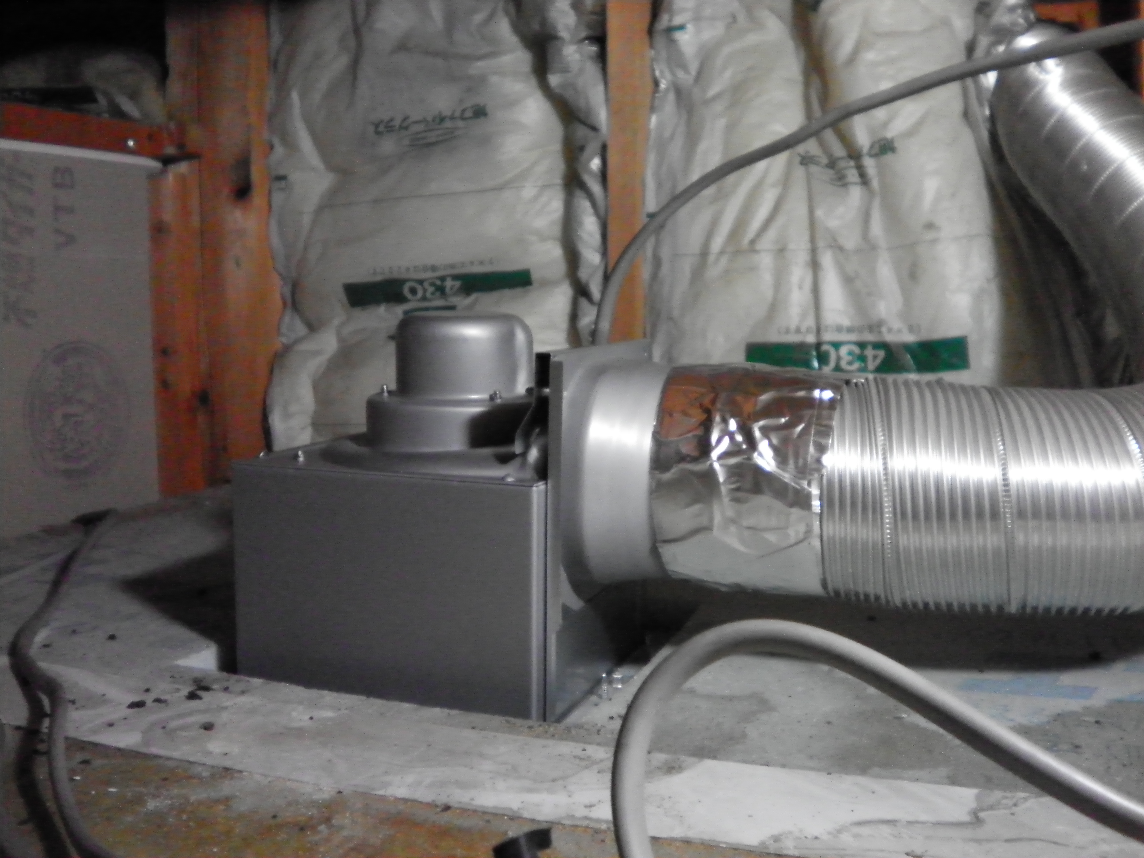 換気扇を取り付け、アルミダクトを本体に接続アルミテープで