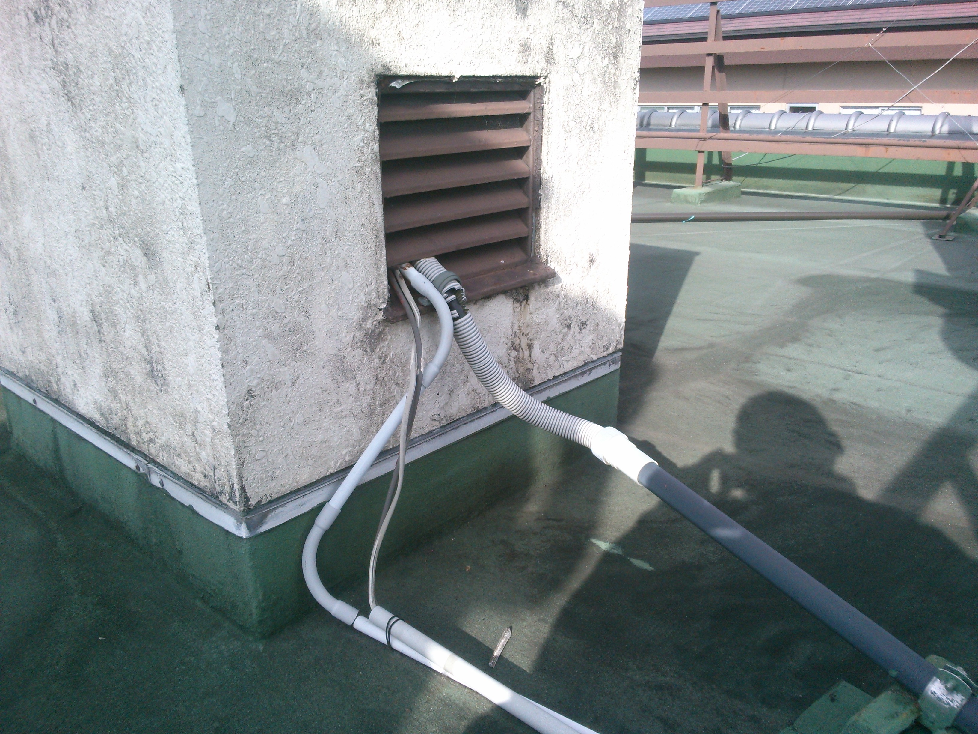 ガラリから入っている配線を違う面から配線替えします。