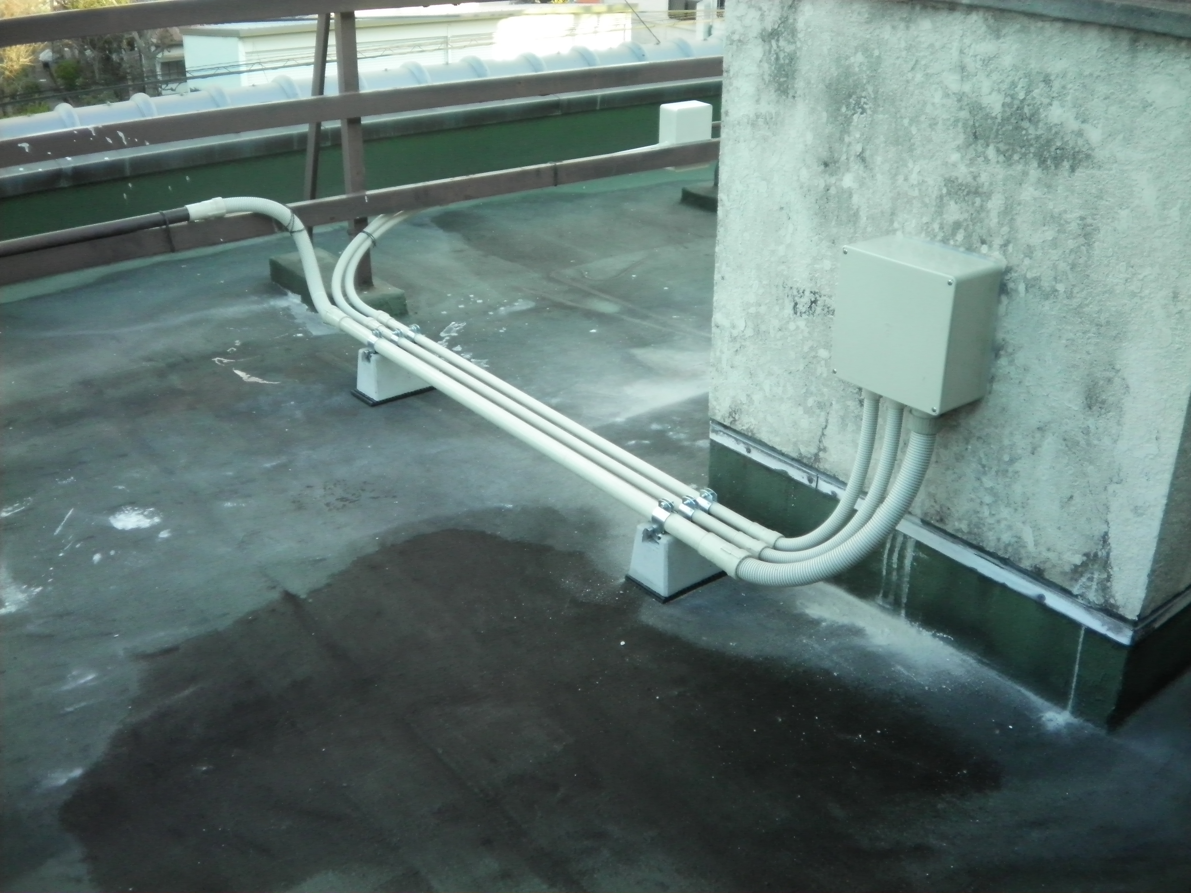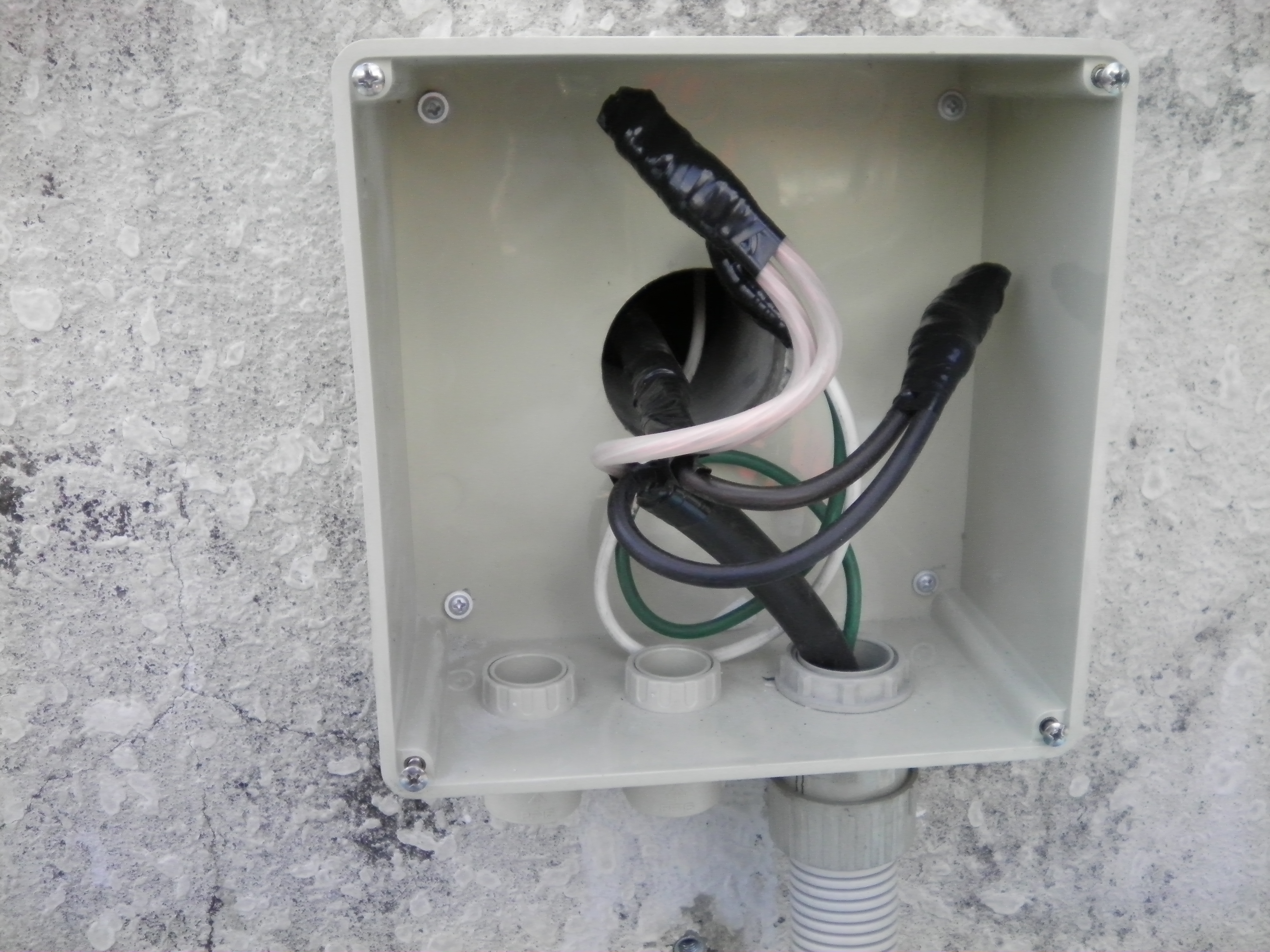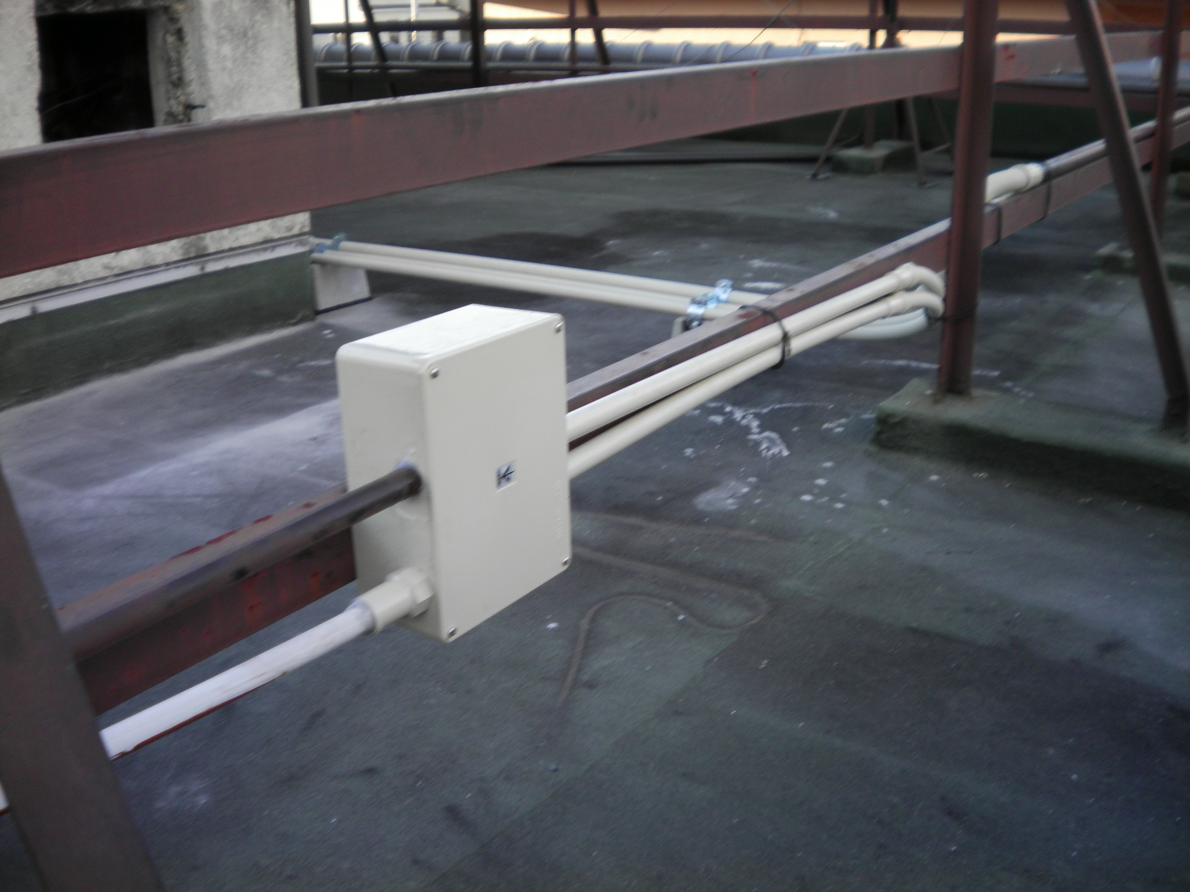 それぞれの電線をボックス内で接続し、配管も塩ビ、PF管を使い