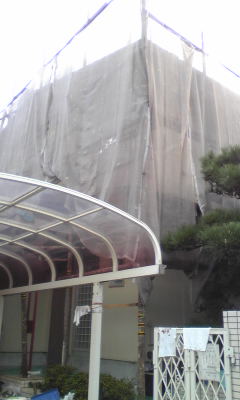 足場を組み養生シートを