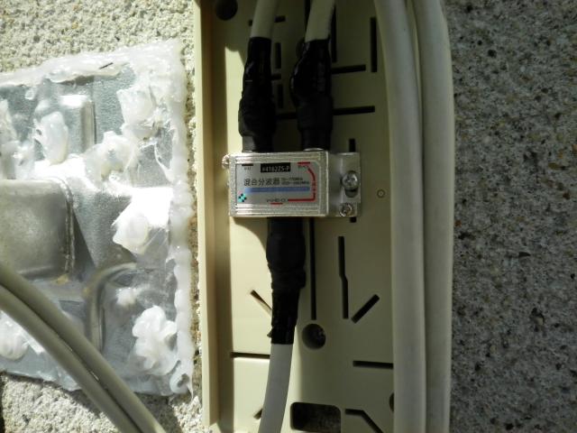 ボックスを壁面に取り付けBSとUHFを混合して、テレビまで配線をしました。