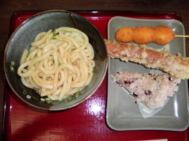 サイドメニューに赤飯、ちくわの揚げ物、うずらの串を頂きました。