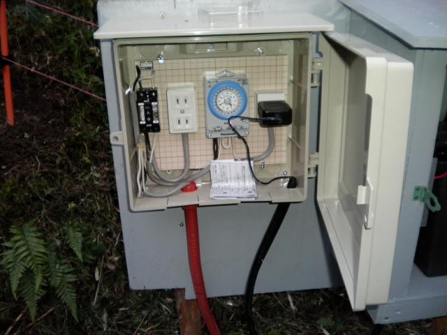 木箱とボックスの中に制御する機械を入れます。タイマー制御で