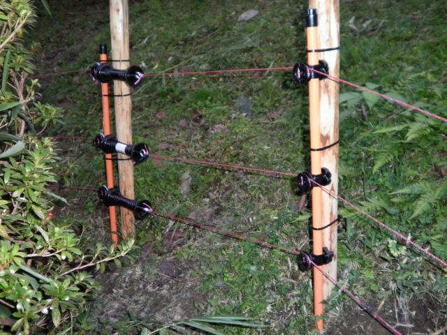 電線を巻きつける碍子(プラスチック)を等間隔に取付ます。