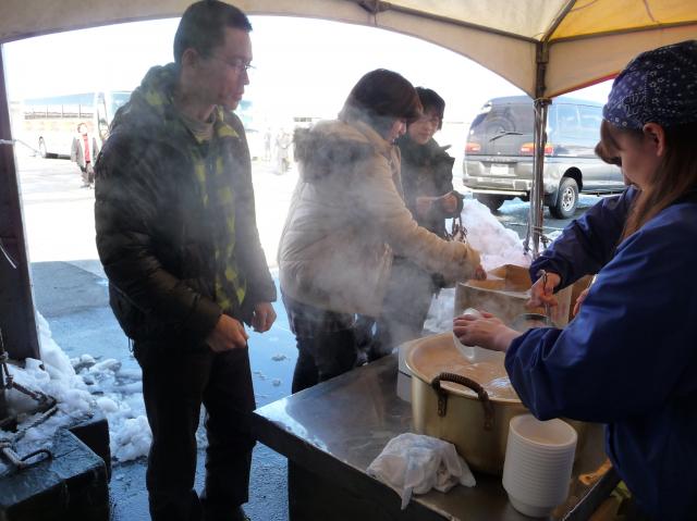 お味噌汁を戴いて、皆さんそれぞれ買い物をされていました。