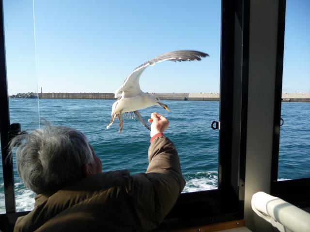 皆さん夢中でうみねこに餌を!見事手からカッパえびせんを
