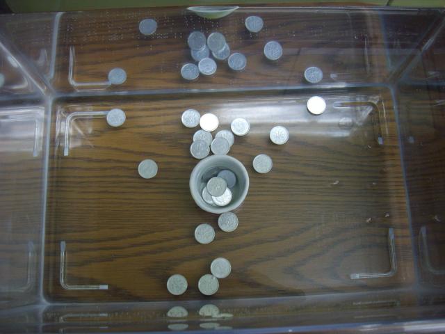 ピノは1円玉ゲームのルール説明とお手伝いです。