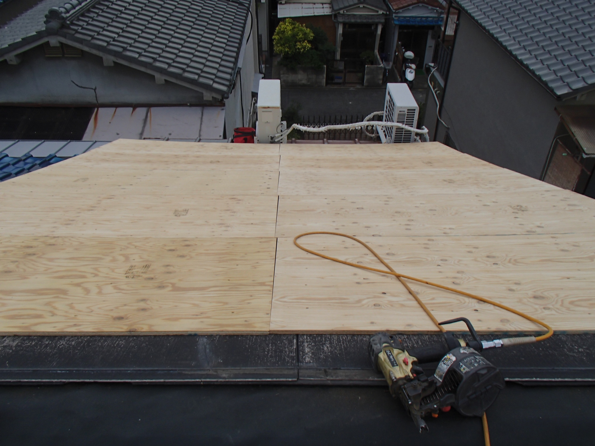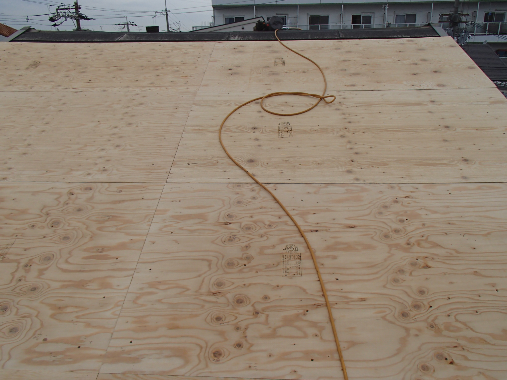 午前中にコンパネを貼り終わったようです。