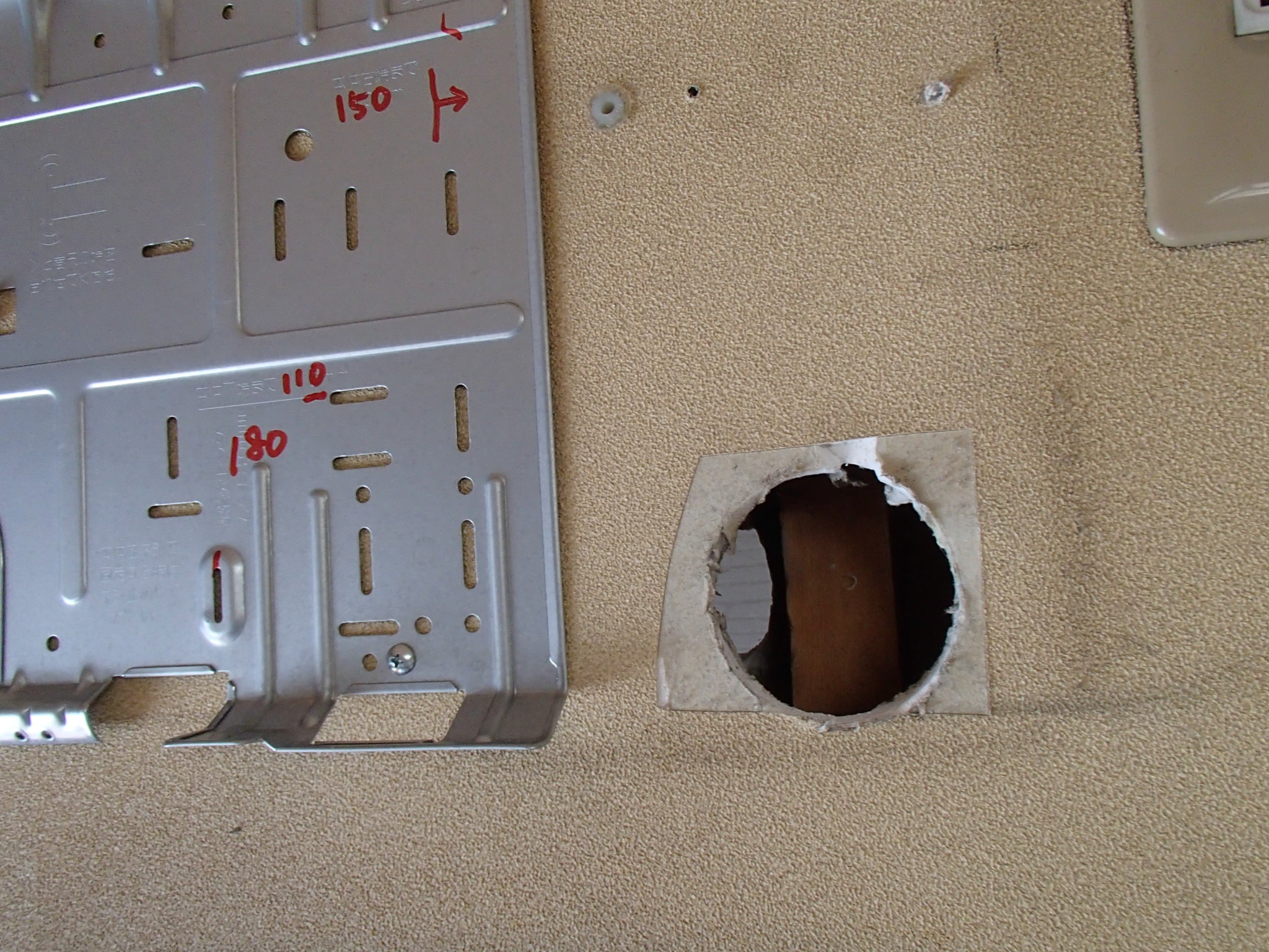 配管穴のセンターに寸三が見える。 (´д`)