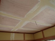 ベニヤを貼ることも検討したのですが、職人さんのご意見を聞いてボードを貼ることに・・・。