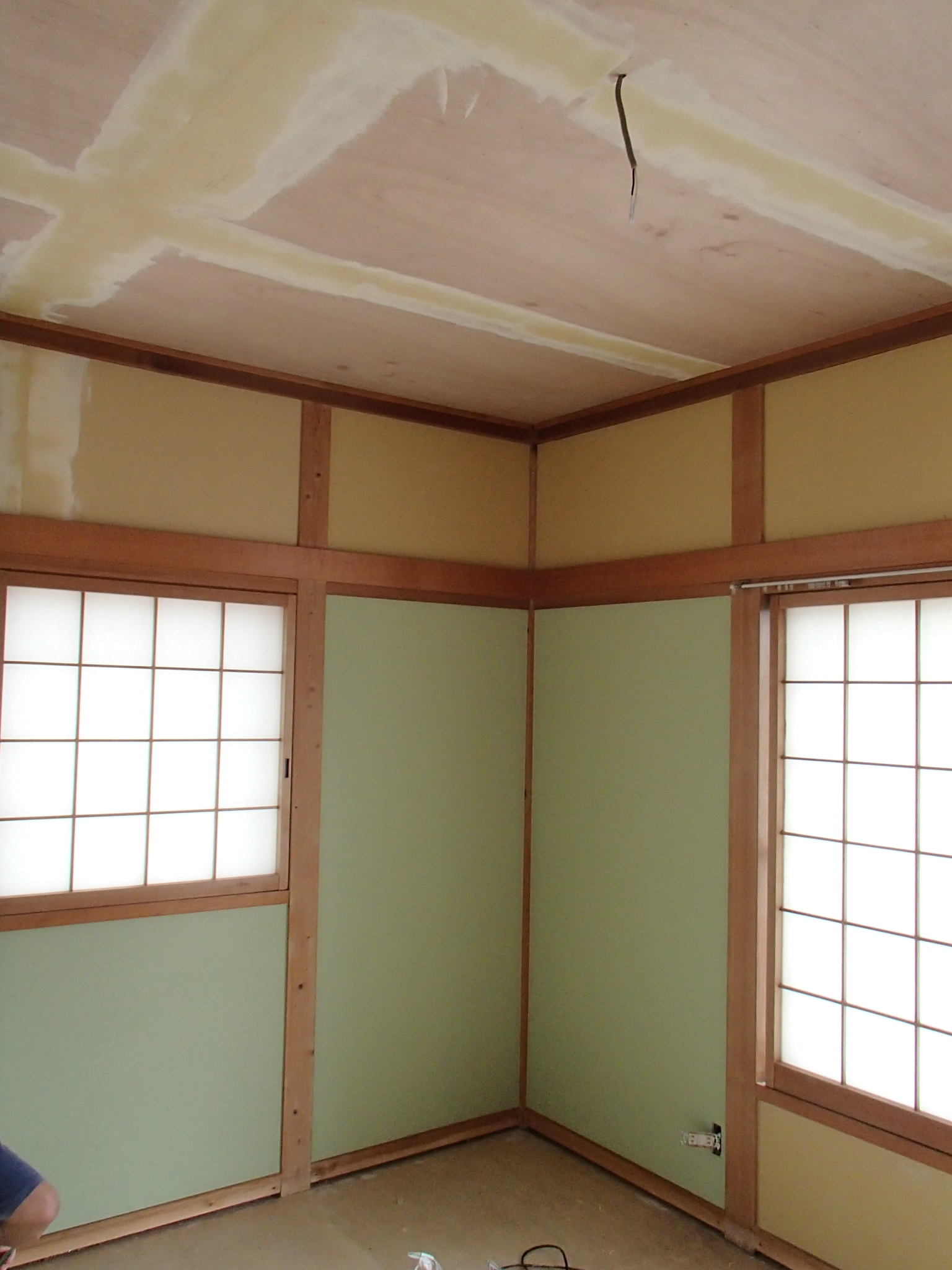 今日、下地が貼り終わったので、明日はクロスを貼って仕上げます。