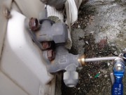 右側の古い配管は造作壁の中に処分です。