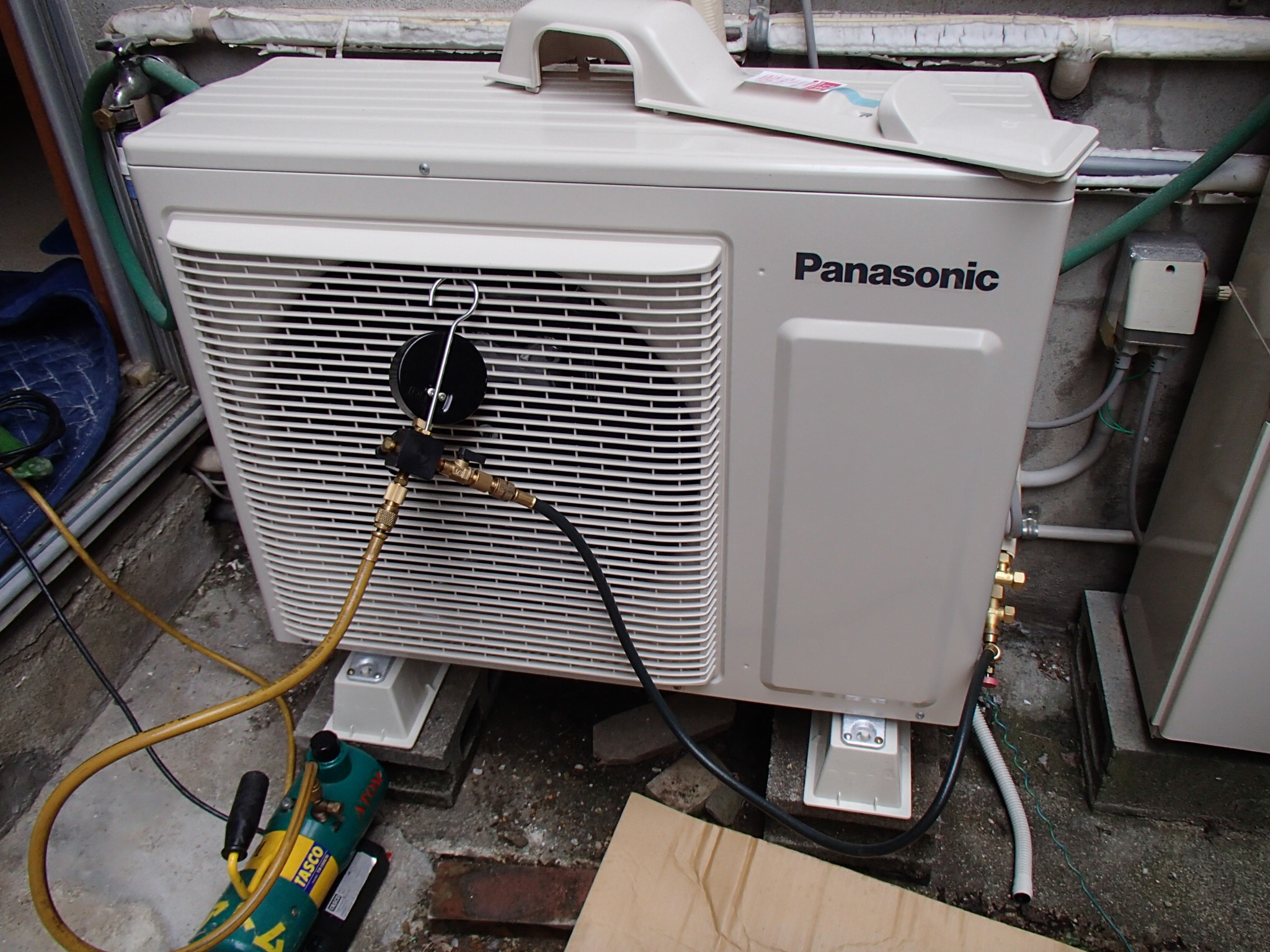 配管接続後は真空乾燥です。