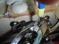 混合水栓を固定するのにも、下にもぐらなくていいのです。