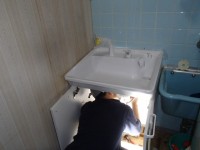 古い水栓を取り外し…。