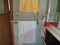 手洗い器の横には、立ち上がる時に便利なように、手すりを取り付けてみました。