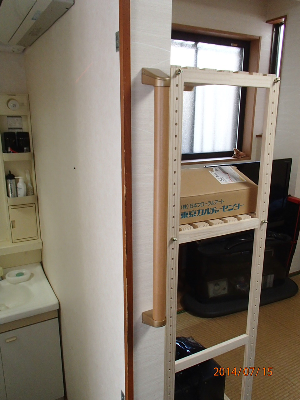 洗面所の入り口に、縦の手すりを取り付けて…。