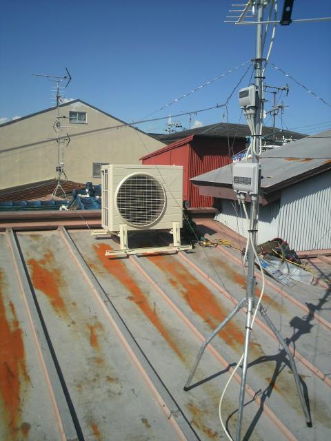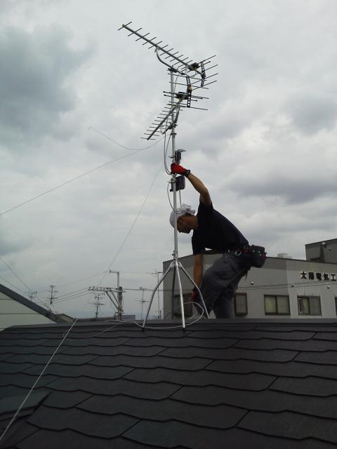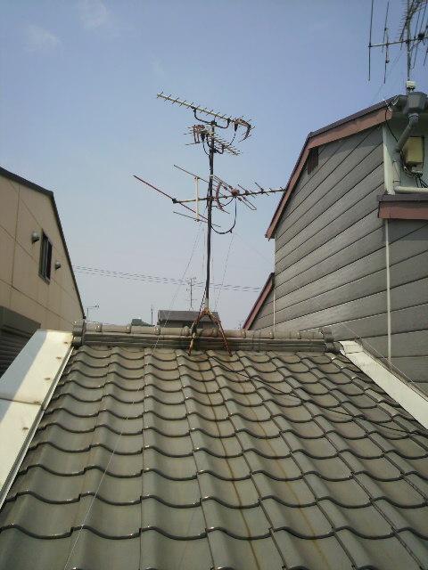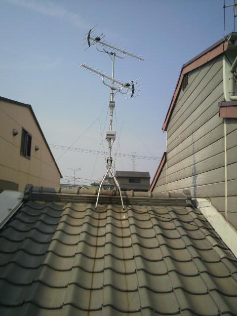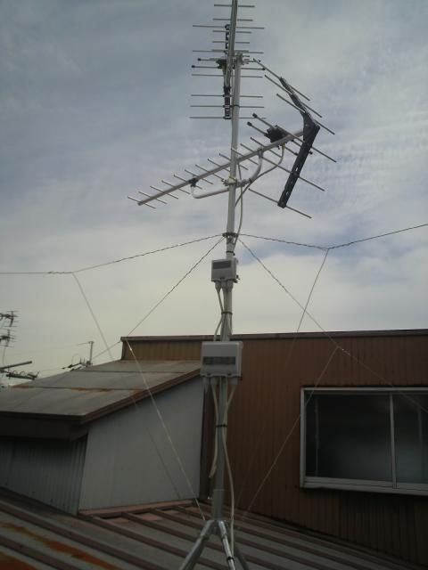 今回はテレビ三台を御購入していただき、設置設定させていただいたのですが、神戸局のサンテレビは受信されていたのですが、生駒局のABC放送はまったく受信不可で、その他のチャンネルも電界強度が不足していたので、お客様もかなり古いアンテナなのでついでに交換してほしいとのご依頼により急きょ、地上デジタルアンテナ工事となりました。
