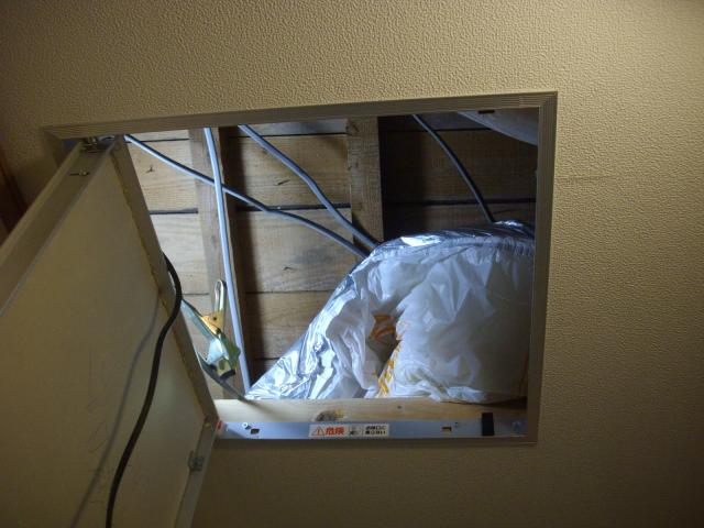 暗がりの中、懐中電灯を持って幹線をたどっていくと、外部の鉄パイプが所どころ腐食している。