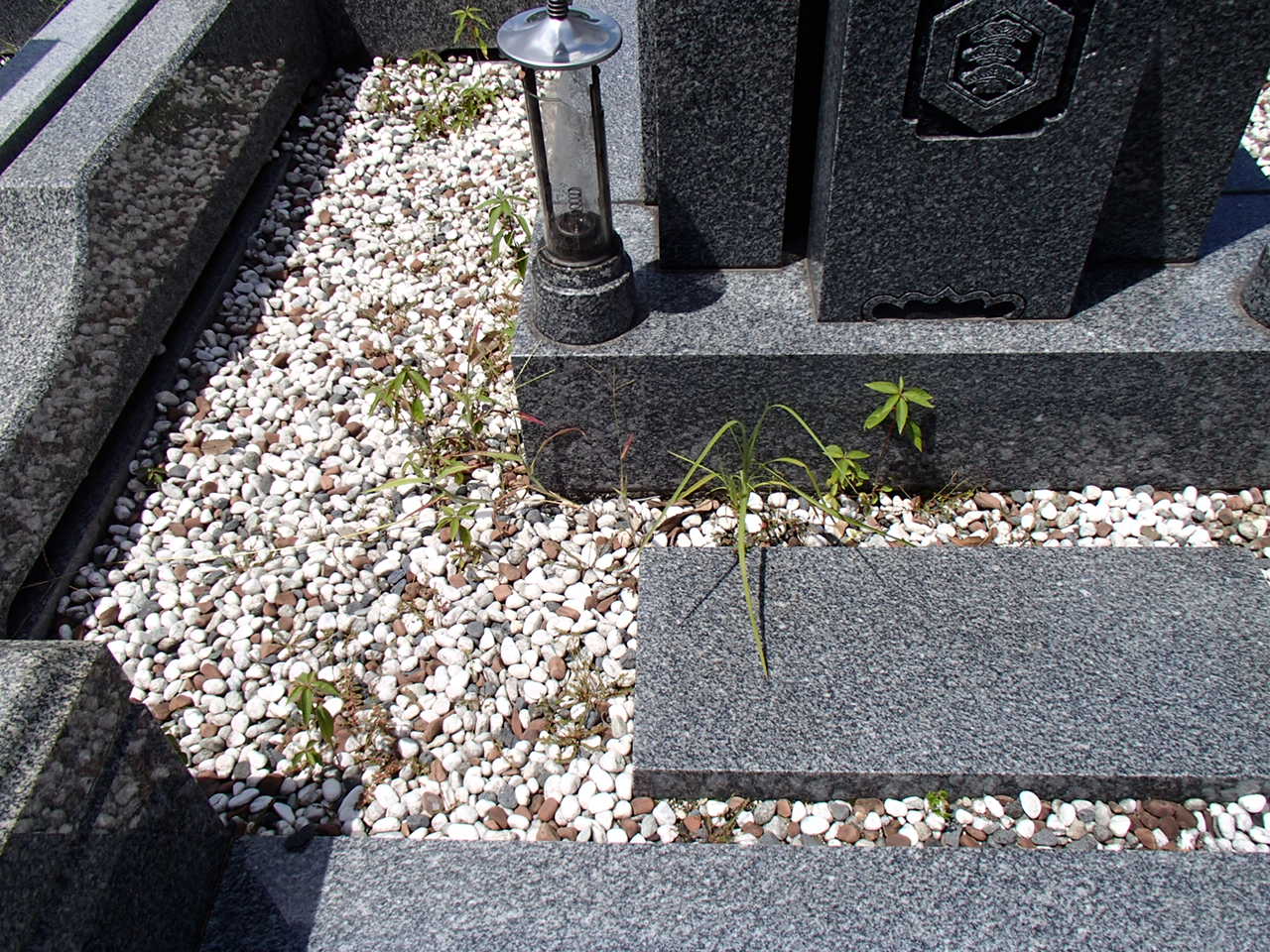 お墓参りには、よく行くのであまり草も生えていません。