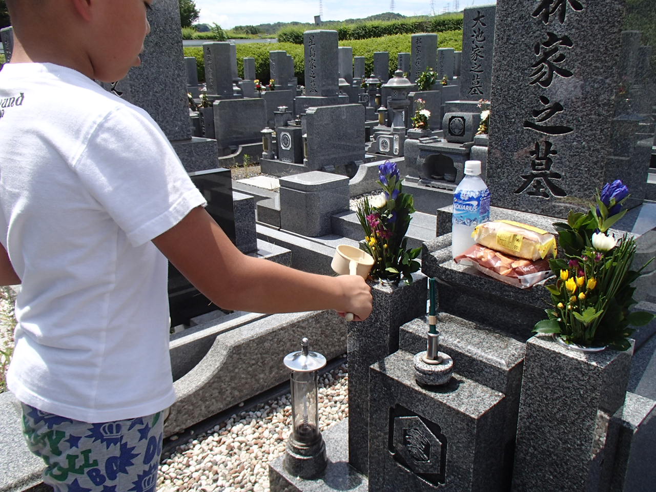 ガリガリ君、もうすっかりお墓参り上手になりました。