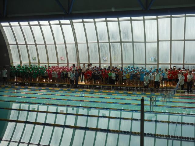なみはやドームで、KTVスイミングスクールの競泳会が開催です。