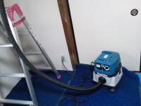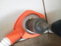 サンダーには集塵ガイドを取付けて、掃除機で吸い取りながら作業をします。