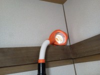 掃除機のスイッチをONすると、パットが壁に吸い付きます。