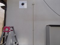 スリーブを挿入して、室内機の取付が完了です。