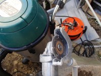 排水管を通す穴をサンダーでカットします。