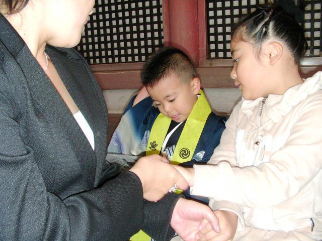 八幡宮の境内前で、着付け直しのサービスがあったのでお願いしたところです。