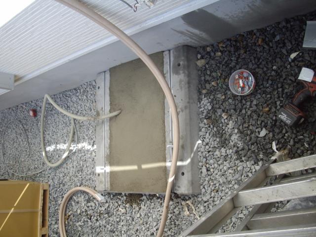 エコキュートの基礎ベース取付 コンクリートで固めます