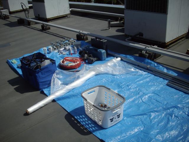屋上での作業の為、工具や材料を上げるのが、スライダー(梯子)での上り下りになったため、大変でした。