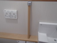 手洗い器の横には、立ち上がる時に便利なように、手すりを取り付けてみました。