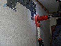 乾式のダイヤモンドカッターで穴あけです。