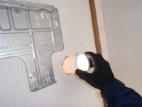 取付板を付けて、配管穴にはスリーブを挿入します。