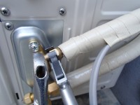 本体のフレアナットを外した後、ごみなどの侵入を防ぐためにキャップをします。