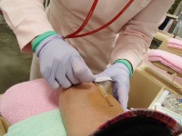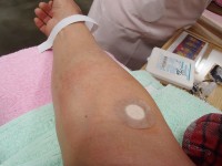 腕の周りが広くうっすらと赤らんでいるのはアルコール消毒をしたもの…。