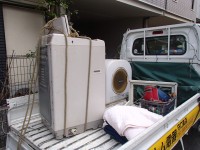 2階のベランダに設置してあった、洗濯機とランドリーセットを降ろします。
