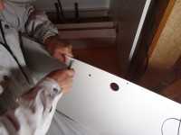 底板に穴をあけます。