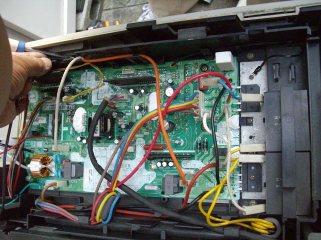 基盤からコンプレッサーへのリード線を取り外し電圧の測定