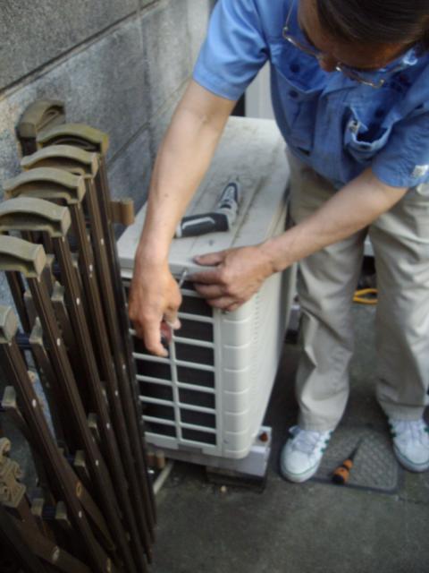 エアコンの点検をしているところです。