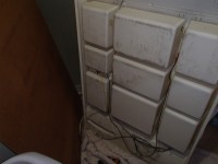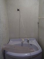 電源線が縛られて、壁の中に押し込まれていた。(^_^;)